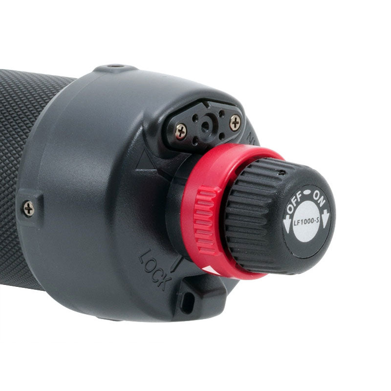 The maximum power is 2400 lumen at level 6 of FULL mode. The LOW mode is about -1.5EV of the FULL mode. Each click of the Selector Ring LF provides about 1.0EV increments (FULL) or about 0.9EV (LOW). The rotary switch is equipped with a lock ring to prevent accidental activation of the light.